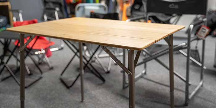 Leicht und stabil – von verschiedenen Herstellern – gern auch als Holzfalttisch.